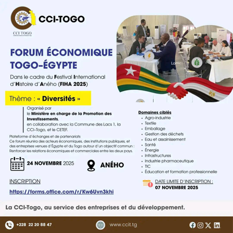 En marge du Festival international d’histoire d’Aného (FIHA 2025), la ville historique d’Aného, située à une cinquantaine de kilomètres à l’est de Lomé, abritera le Forum économique Togo–Égypte le lundi…
