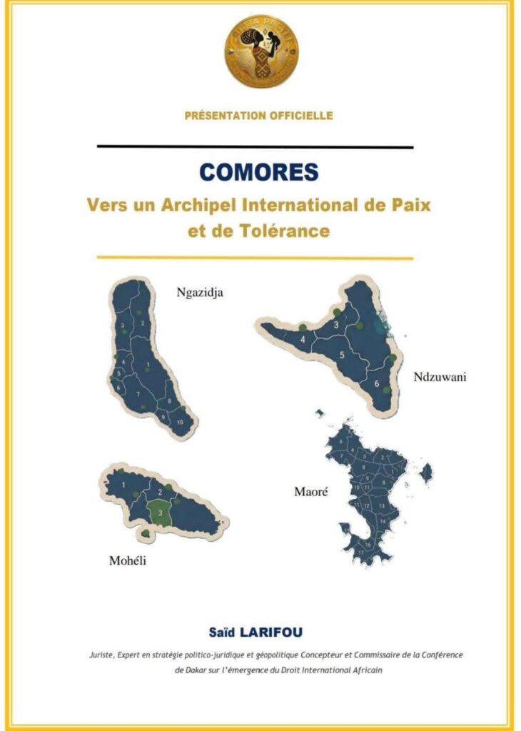 Une vision audacieuse, à la fois politique, stratégique et profondément humaine, vient d’être portée sur la scène internationale. À travers une initiative baptisée « Comores : Archipel international de paix et de tolérance », le juriste et expert en stratégie politico-juridique et géopolitique Saïd Larifou propose de repositionner Union des Comores comme un modèle africain et mondial de stabilité, de dialogue et de développement maîtrisé.