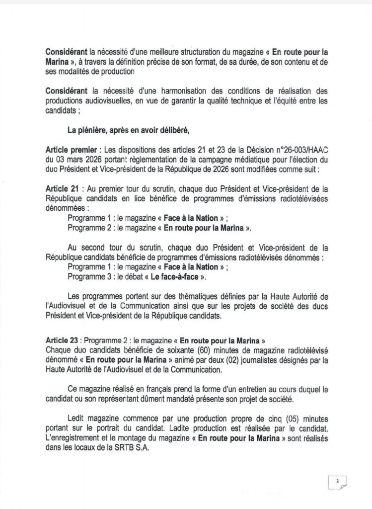 Cette modification intervient à la suite de concertations approfondies entre la HAAC, les professionnels des médias et les équipes techniques de production audiovisuelle. L’application initiale du dispositif de campagne médiatique a révélé plusieurs difficultés d’ordre technique, notamment en ce qui concerne l’organisation des émissions et la qualité des productions audiovisuelles.