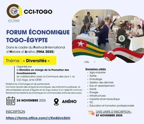 En marge du Festival international d’histoire d’Aného (FIHA 2025), la ville historique d’Aného, située à une cinquantaine de kilomètres à l’est de Lomé, abritera le Forum économique Togo–Égypte le lundi…